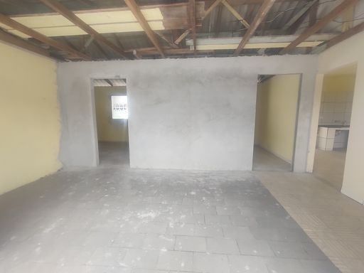 Restam finalizar a instalação de portas e janelas, colocação de piso, parte elétrica e pintura interna.